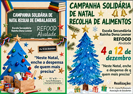 Com o espírito de solidariedade que sempre caracterizou a nossa comunidade educativa, a Escola Secundária Rainha D. Leonor associa-se, este ano, à Refood de Alvalade numa campanha solidária de recolha de embalagens e bens alimentares, com o objetivo de apoiar famílias carenciadas da nossa freguesia.