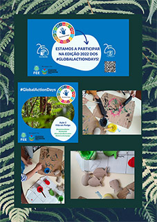 Aqui temos a construção de placares alusivos à vida aquática com ilustrações a partir de rolos de papel higiénico e de embalagens diversificadas, bem como construção de instrumentos musicais a partir de caixas de cartão e tampas de plástico para o projeto de articulação com os parceiros Foco Musical, concerto "Floresta D'Água" a acontecer na segunda quinzena de maio da Aula Magna.