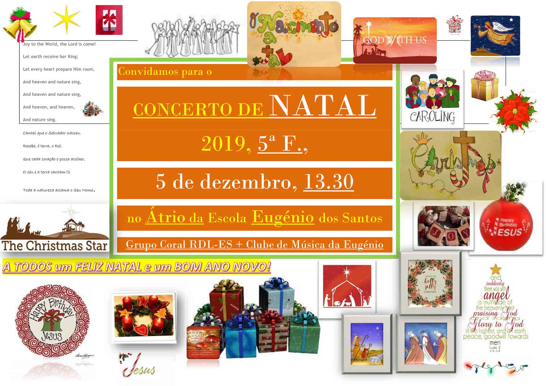 vamos cantar Joy to the World e outros temas, no átrio da Escola, às 13.30.